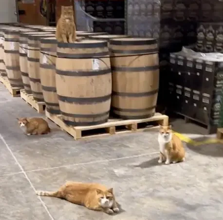 In the years since their rescue, all four of the kittens have grown into healthy, happy adult cats. They thrive in the distillery environment, enjoying lounging in their catio and hanging out with the staff and guests.
