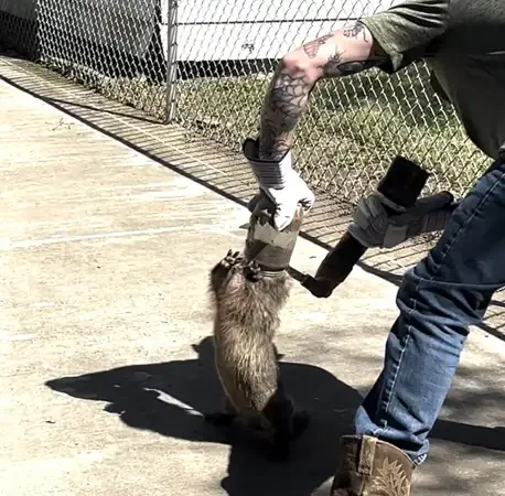 Using an oscillating saw with a special blade (similar to those used by doctors to remove casts), Vince carefully loosened the lid of the jar to allow the groundhog to escape. It was a nerve-racking experience all around.