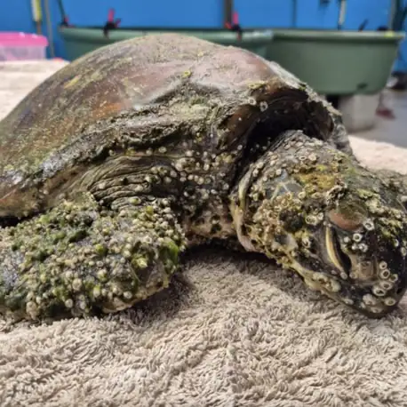 Turtle Covered In Barnacles Couldn’t Move — Now She’s A Glowing ‘Boss’