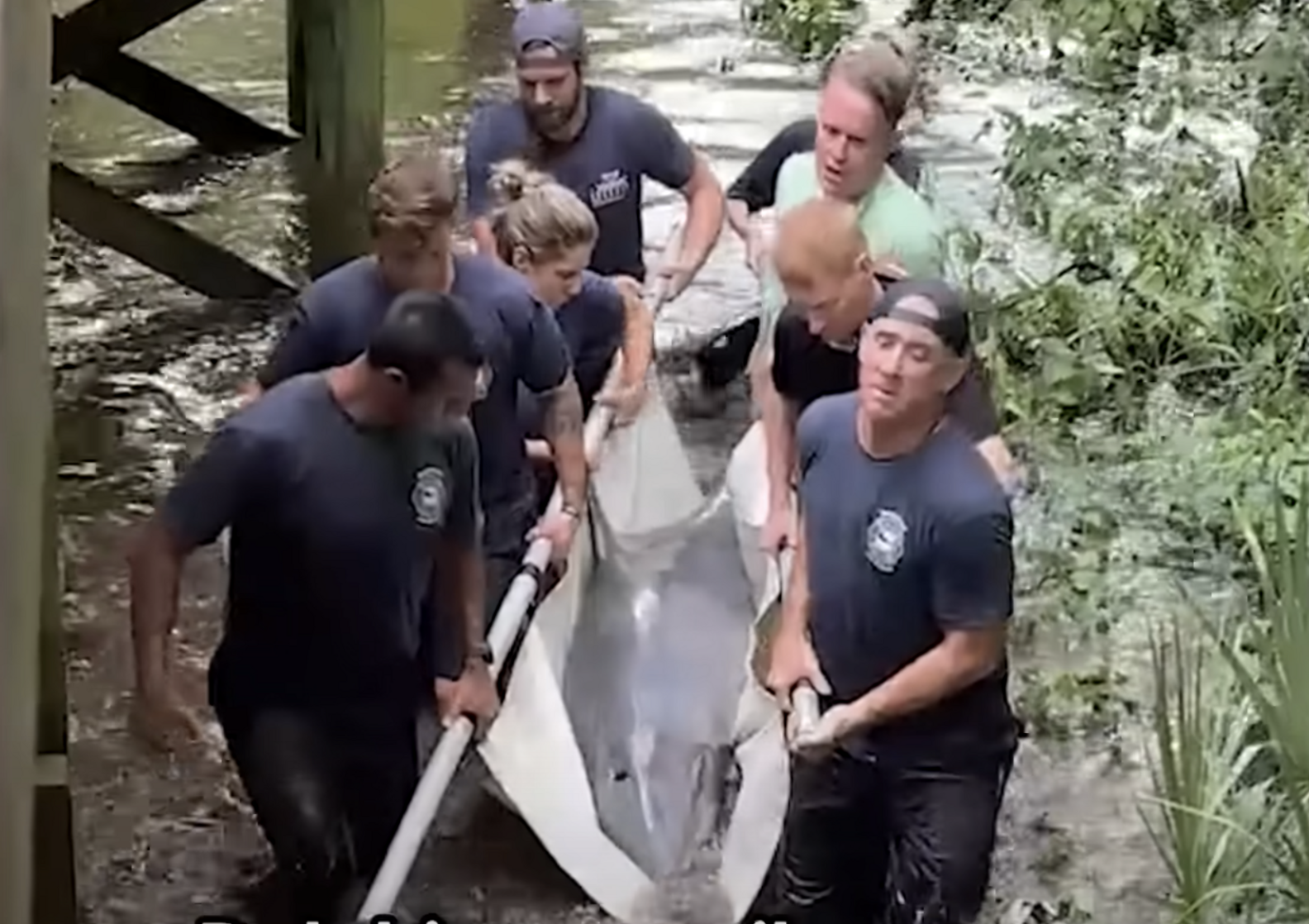 “The animal swam up there due to excessive rainfall and high tides,” Lowcountry Marine Mammal Network wrote on Instagram. “As the water receded, she became stuck due to shallow water and fallen trees.”