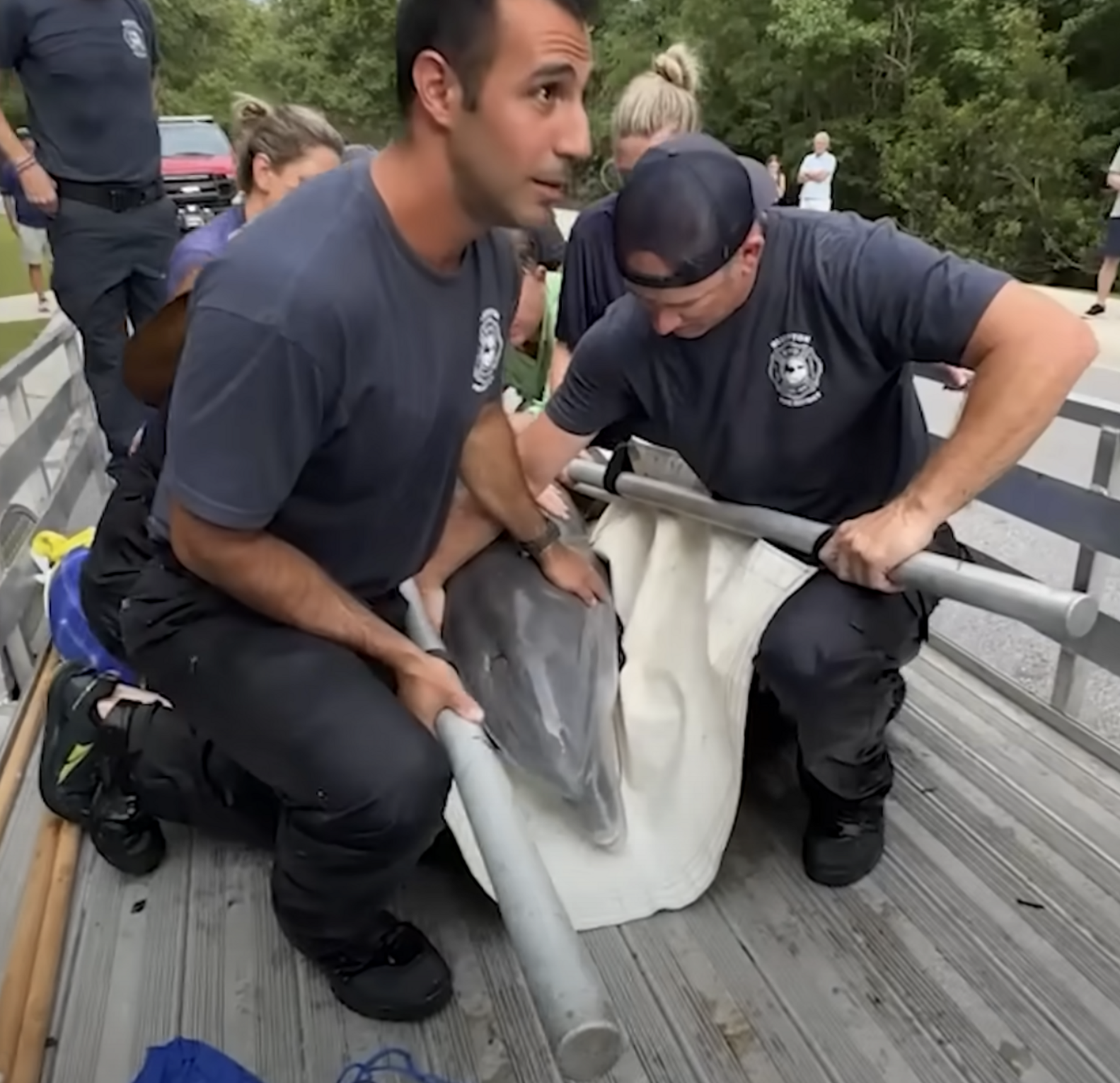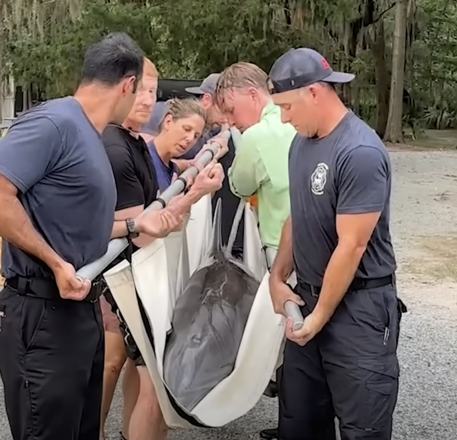 Lowcountry Marine Mammal Network teamed up with the Bluffton Fire Department, and together they headed to the lagoon, where the poor dolphin was waiting for someone to help her. She was miles away from the ocean, and it wasn’t going to be easy getting her back home.