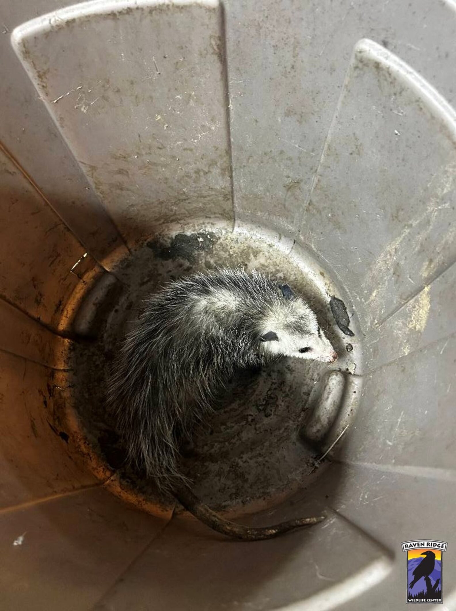 “After calming her down, we learned that she had just returned from a week-long vacation to find a dying opossum trapped in her trash can,” RRWC wrote on Facebook. “She described a heartbreaking scene: the poor creature was swarmed by flies, and a terrible odor filled the air.”